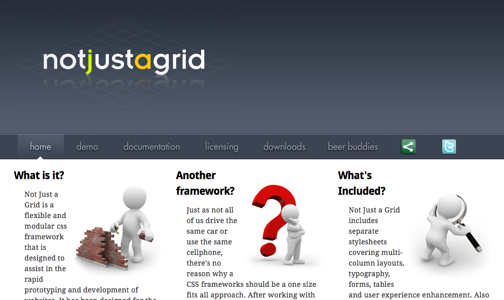NotJustAGrid est l’un des premiers framework, libre de droit, que j’ai utilisé, à répondre à mes besoins. Il n’est pas très connu, il est simple d’utilisation. La documentation et les exemples sont corrects.