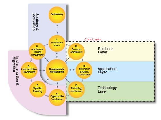 TOGAF (The Open Group Architecture Framework) est un cadre de travail de gestion de l’architecture d’entreprise qui fournit des lignes directrices et des méthodes pour la planification, la conception, la mise en œuvre et la gestion de l’architecture d’entreprise. Archimate est souvent utilisé en conjonction avec TOGAF car il fournit un langage de modélisation graphique pour représenter les différentes couches d’architecture définies dans TOGAF.