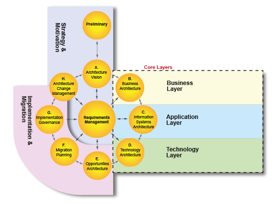 TOGAF (The Open Group Architecture Framework) est un cadre de travail de gestion de l’architecture d’entreprise qui fournit des lignes directrices et des méthodes pour la planification, la conception, la mise en œuvre et la gestion de l’architecture d’entreprise. Archimate est souvent utilisé en conjonction avec TOGAF car il fournit un langage de modélisation graphique pour représenter les différentes couches d’architecture définies dans TOGAF.